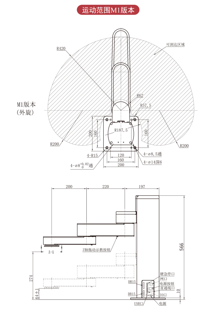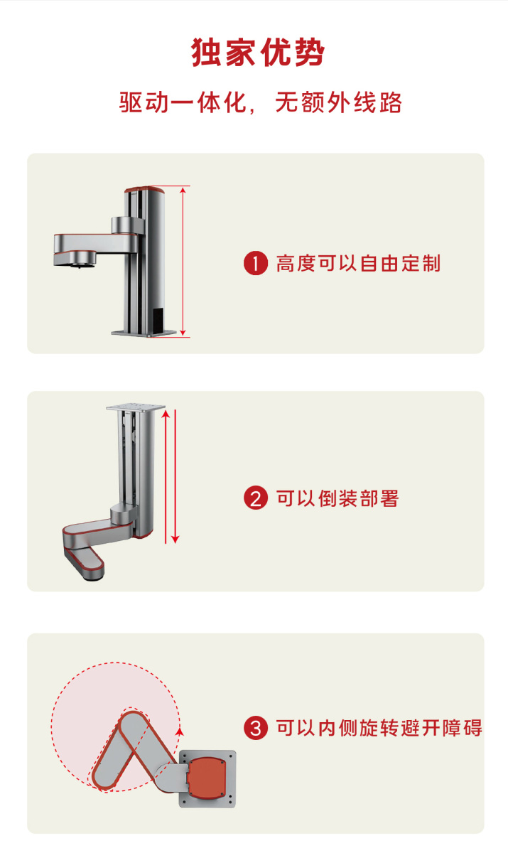 電器預(yù)留接口 | 標(biāo)配:插座面板直通小臂下蓋板2根4*23awg(無(wú)屏蔽層)線(xiàn) 可選配:插座面板直通法蘭2根Φ4氣管 | ||