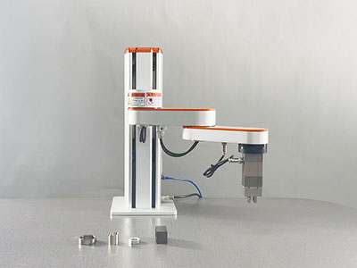 中小型安裝機械設備手上,“四軸機械臂”就是指“可選擇性安裝骨關節機器臂”,即四軸機械臂的手腕一部分能夠在一個幾何圖形平面上隨意挪動。四軸機械臂的第四個骨關節還可以在水準表面上下自由旋轉的,第三個骨關節由一個稱之為翎毛的金屬桿和夾持器構成。該金屬棒還可以在豎直平面上往上和向下滑動或貫穿其垂直軸轉動,但是不能歪斜。