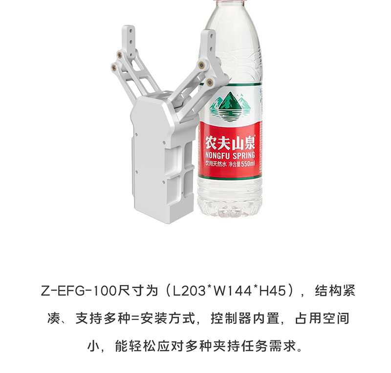 ? ? ? ? 慧靈HITBOT,電動(dòng)夾爪Z-EFG-100,擁有100mm的長(zhǎng)行程,夾持力&行程可調(diào),控制器內(nèi)置,即插即用,有自適應(yīng)抓取,功能強(qiáng)大!