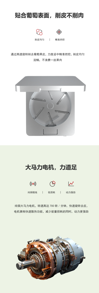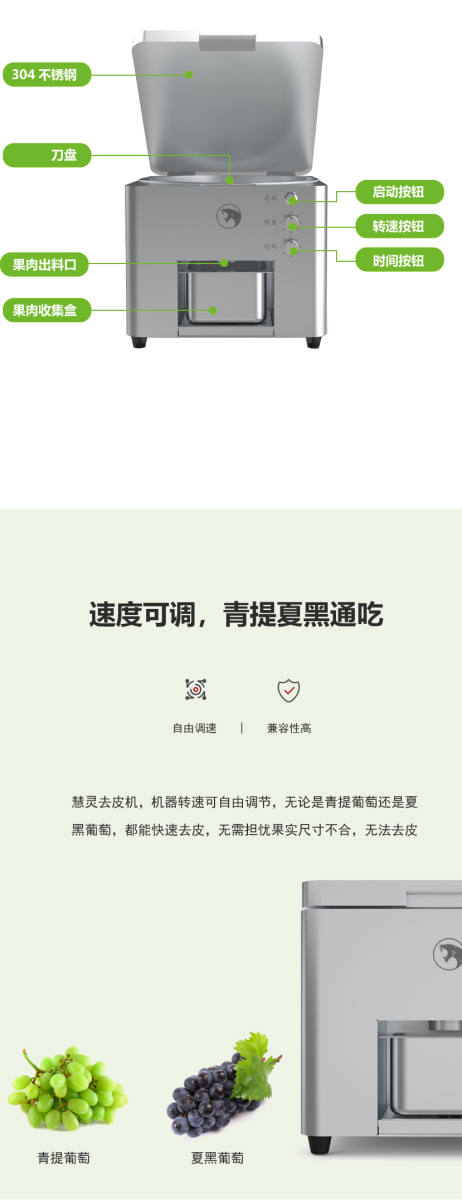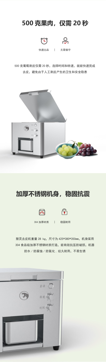 - 該葡萄剝皮機(jī)可對(duì)物料去皮以高度還原人工剝皮的效果,不僅提高了物料的去皮效率還能保證去皮過程更加衛(wèi)生;