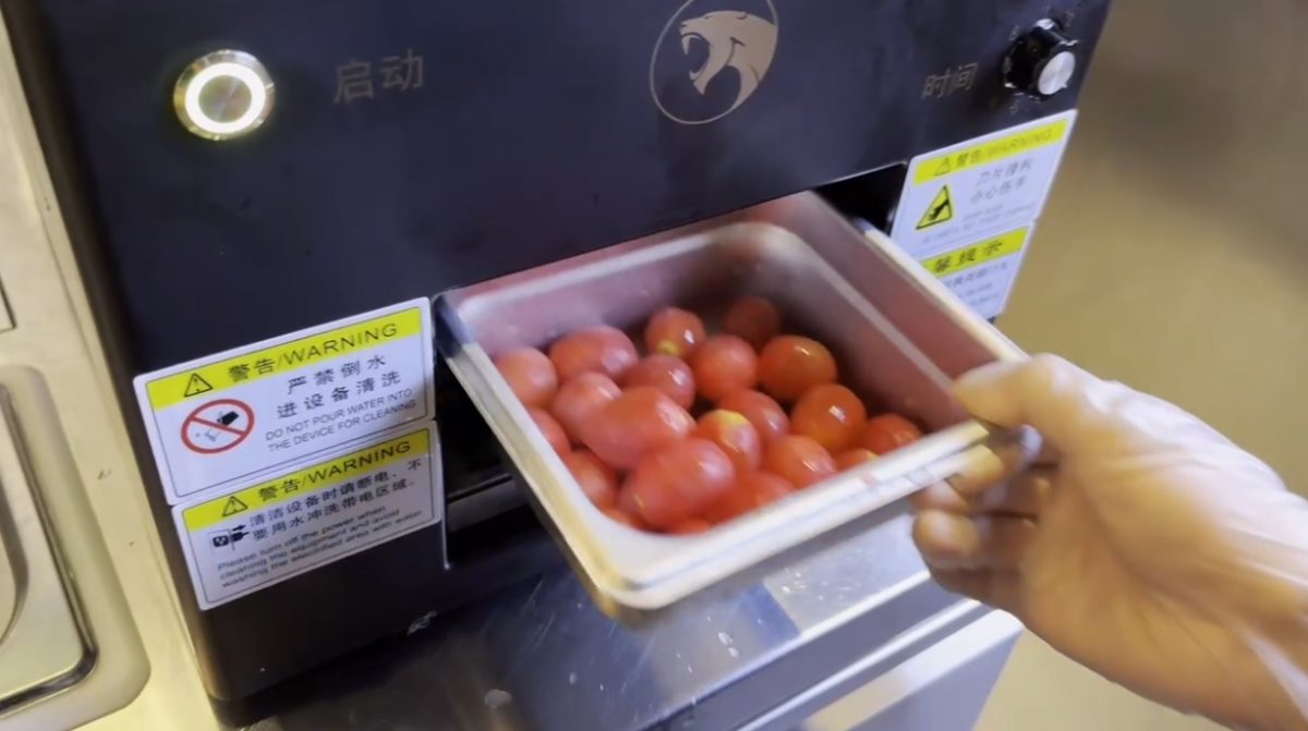 使用慧靈HITBOT去皮機(jī),您只需將圣女果放入機(jī)器,設(shè)定好時(shí)間和轉(zhuǎn)速,20秒后就能得到一碗光滑誘人的剝皮圣女果。而且,在整個(gè)去皮過程中,您無需時(shí)刻盯著機(jī)器,不僅提高了效率,還避免了因人工剝皮產(chǎn)生的衛(wèi)生和安全隱患。