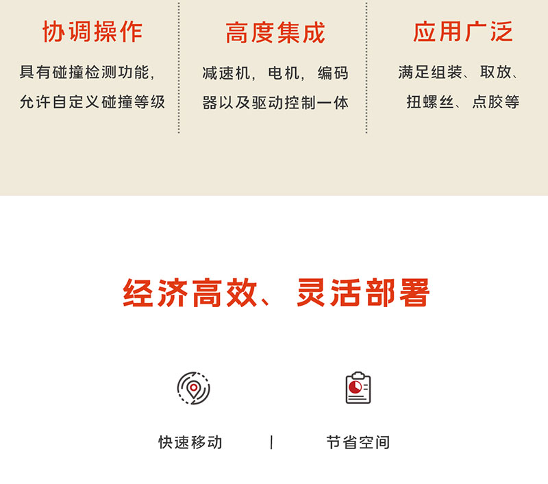 作為同時具有四軸協作機械臂、六軸協作機械臂、電動夾爪與智能模組的機器人公司。我們專注于核心技術的研發,堅持產品創新,以高效、低成本、模塊化的方式,為行業客戶提供極致性價比的機器人產品及自動化解決方案。