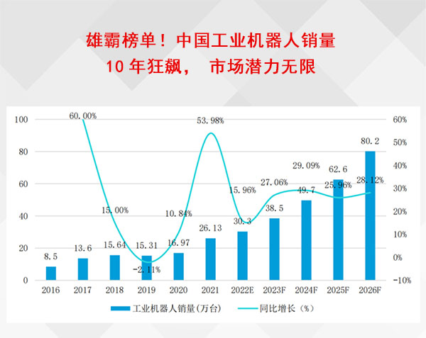 雄霸榜單!中國工業機器人銷量10年狂飆,市場潛力無限
