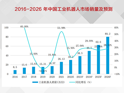 2016-2026年中國工業機器人市場銷量及預測