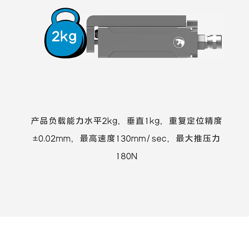 2023年1月7日 Lu, DongWu 智能電缸 0 Z-Mod-EPA-35-50 首頁 / 智能電缸 / Z-Mod-EPA-35-50 微型電動推桿 滑塊結(jié)構(gòu),抗傾覆力強 點擊觀看視頻 微型電動推桿 滑塊結(jié)構(gòu),抗傾覆力強 點擊觀看視頻 產(chǎn)品描述 型號參數(shù) 資料下載 產(chǎn)品描述 Z-Mod-EPA-35-50 核心參數(shù) 2mm 300N? 導程 最大推壓力 50mm ? ? ? ? ? ? ? ? ?3KG 行程 ? ? ? ? ? ? ? ? ? ? ? ? ? ? ? 重復定位精度 *線框尺寸圖 型號參數(shù) 說明項 參數(shù) 行程(mm) 50mm 50mm 導程(mm) 1mm 2mm 最大速度(mm/s) 65mm/s 130mm/s 最大推壓力(N) 300N 180N 最大負載質(zhì)量(kg) 水平:6kg/垂直:2kg 水平:3kg/垂直1kg 重復定位精度(mm) ±0.02mm ±0.02mm 力控精度 ±10% ±10% 推桿不旋轉(zhuǎn)精度 ±1.5° ±1.5° 負載允許力矩 MR:3.14NM MP:1.42NM MY:1.42NM MR:3.14NM MP:1.42NM MY:1.42NM 整機重量 0.6kg 0.6kg 尺寸規(guī)格 125*48*35mm 125*48*35mm 控制方式 I/O控制、485總線控制 適用控制器 Z-Mod-DCIC-4 工作電壓 DC24V±10% 額定電流 2.3A 峰值電流 6.9A 使用環(huán)境 IP40 防護等級 0-40℃,85%RH以下(無結(jié)霜) 資料下載 點擊下載產(chǎn)品手冊 點擊下載3D圖 點擊下載運動范圍圖 產(chǎn)品詳情 相關產(chǎn)品